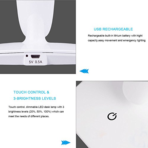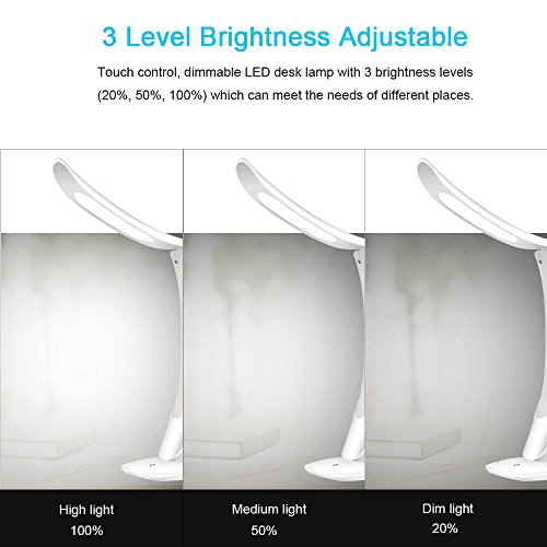 【Touch Control & 3 Brightness Levels】-- Touch control, dimmable LED desk lamp with 3 brightness levels (20%, 50%, 100%) which can meet the needs of different places. Great desk lamp for dorm, dhildren's bedroom, bedside and office.