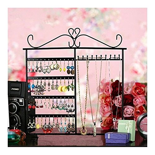 -. Binding : Jewelry -. Brand : Adorox -. Color : Black -. Department : womens -. EAN : 0675309053707 -. Feature : 48 earring holes on the left and 10 hooks on the right / Dimensions: 12.5"W x 13.5"H / Base feet measure approximately 4.5" deep and are hard welded for stability. / Suitable for home or commercial use / Great as a gift idea -. Label : Adorox -. Manufacturer : Adorox -. Model : KME89_ADX_FBK -. PackageQuantity : 1 -. ProductGroup : Jewelry -. ProductTypeName : FINEOTHER -. Publisher : Adorox -. Studio : Adorox -. Title : Adorox Classic Jewelry Earring Holder and Necklace Stand Rack Woman's Bedroom Display -. UPC : 675309053707