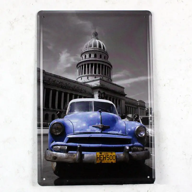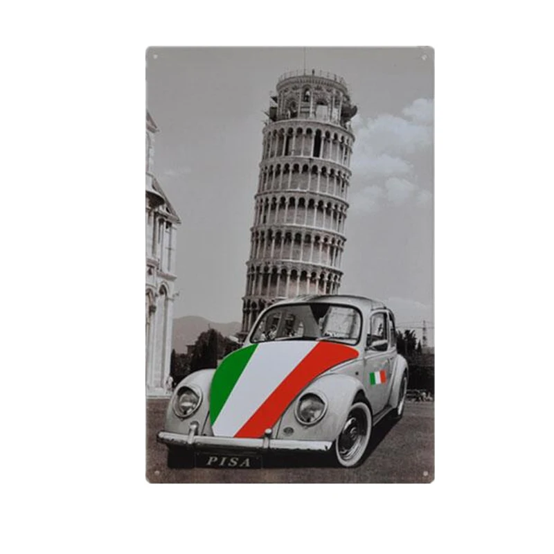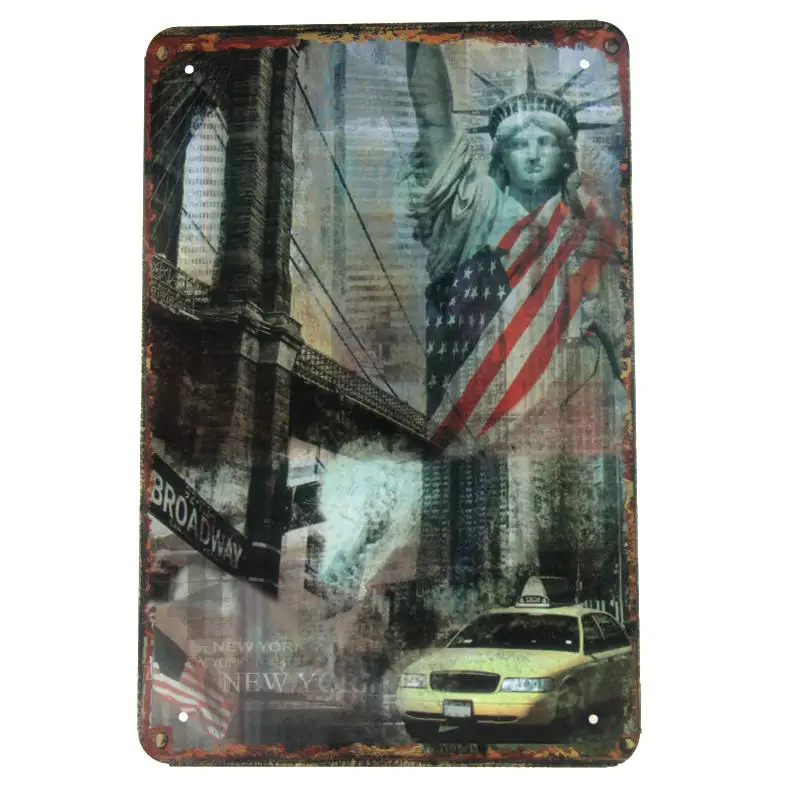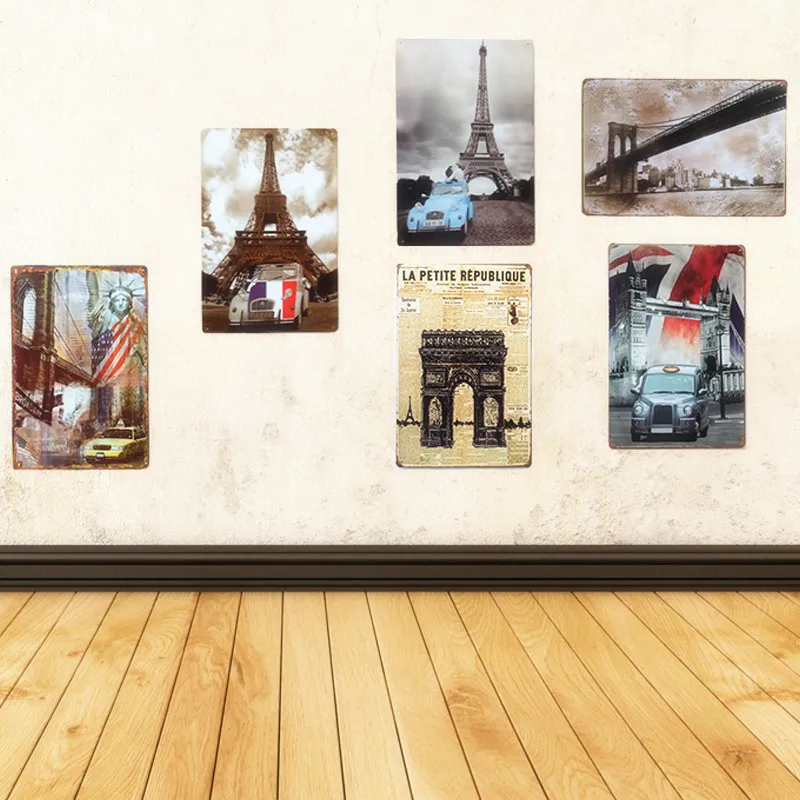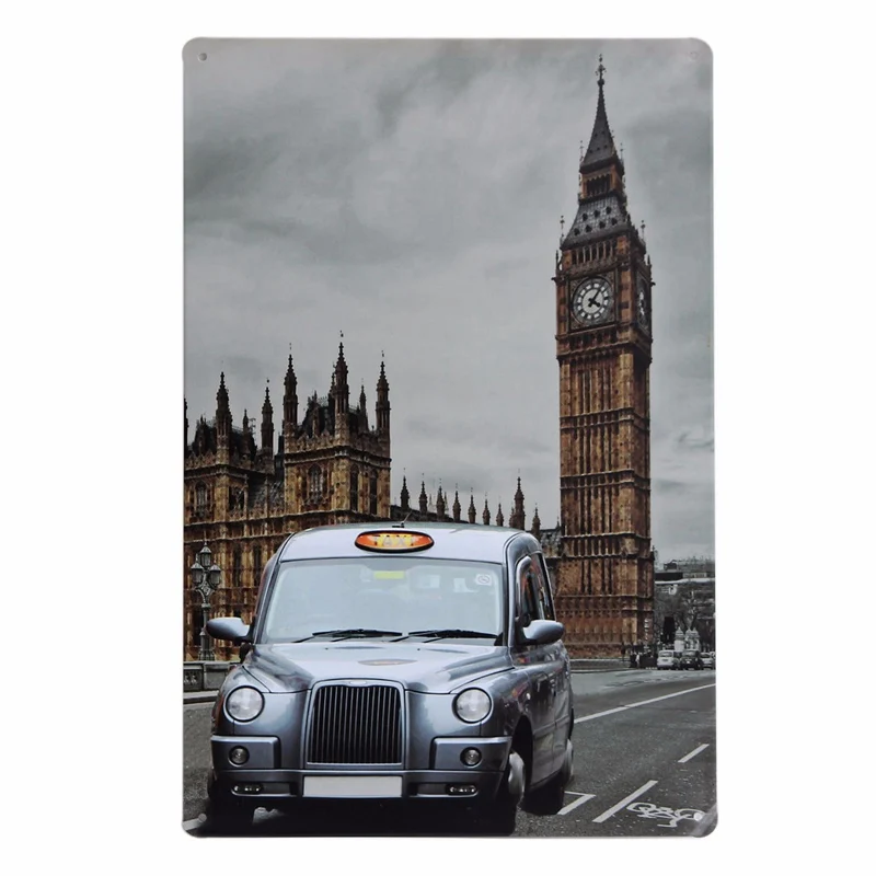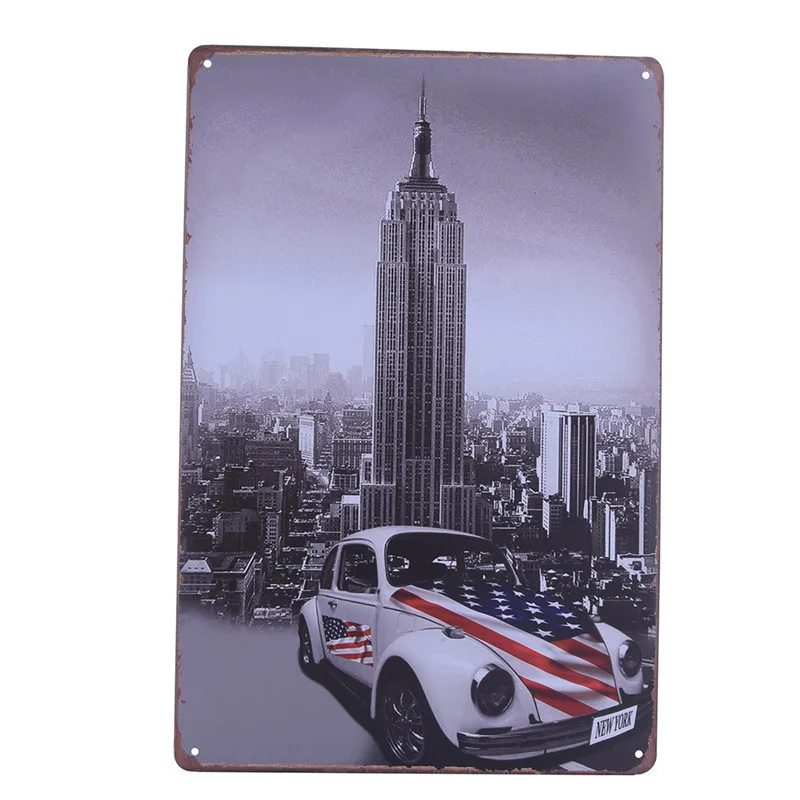 Pattern:Vintage Metal Tin Sign World Buildings And Car