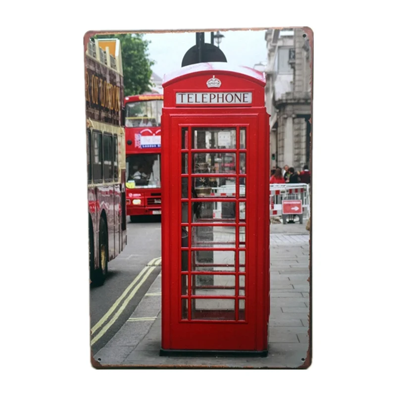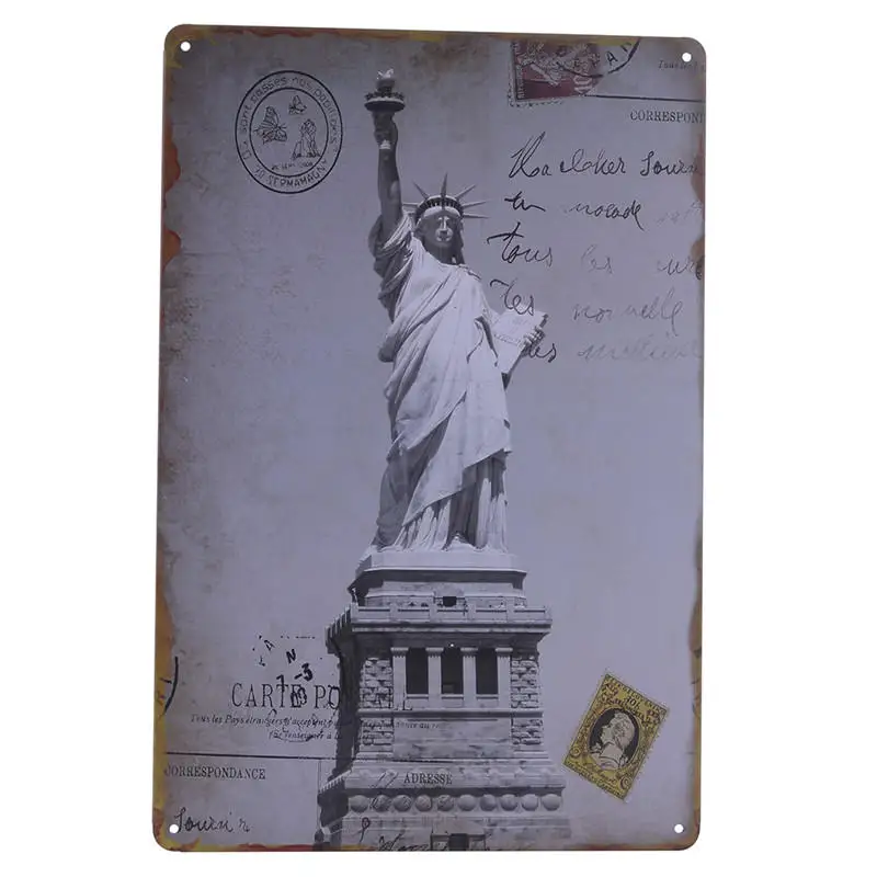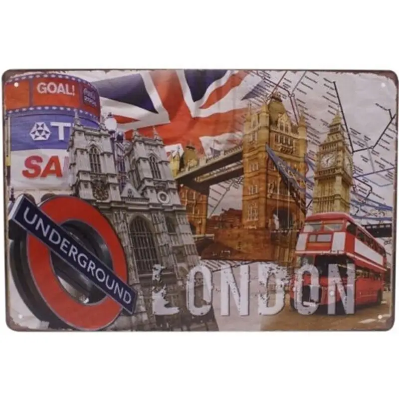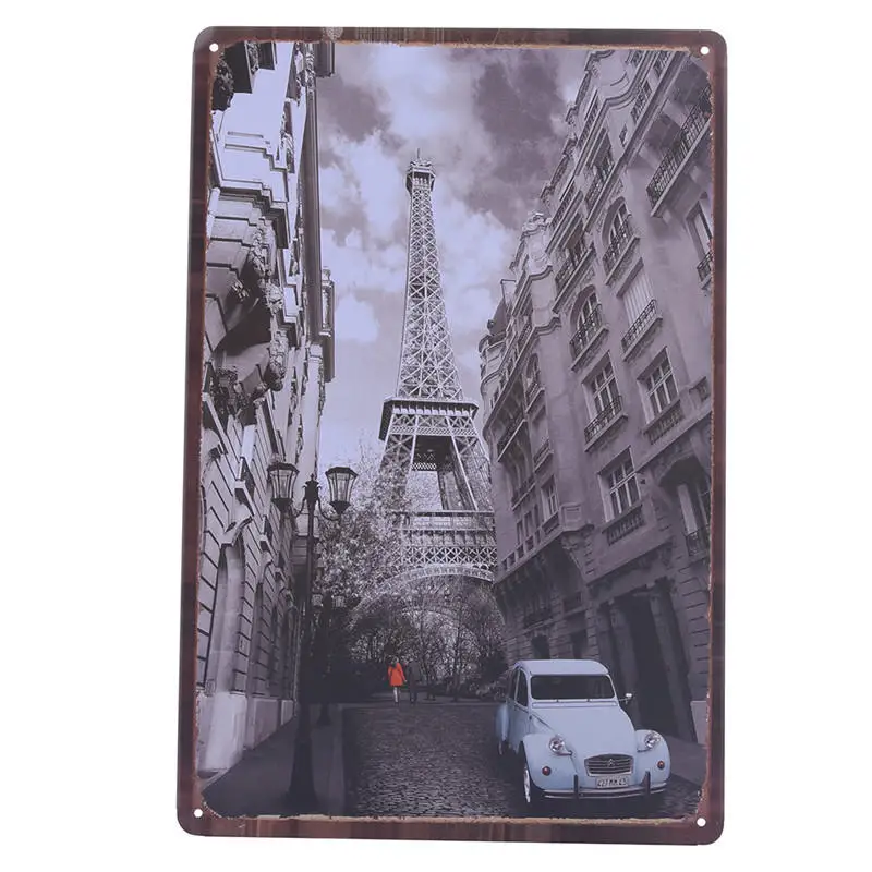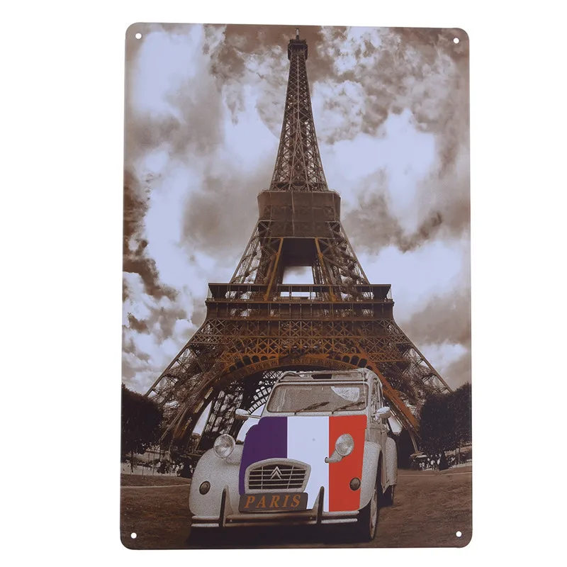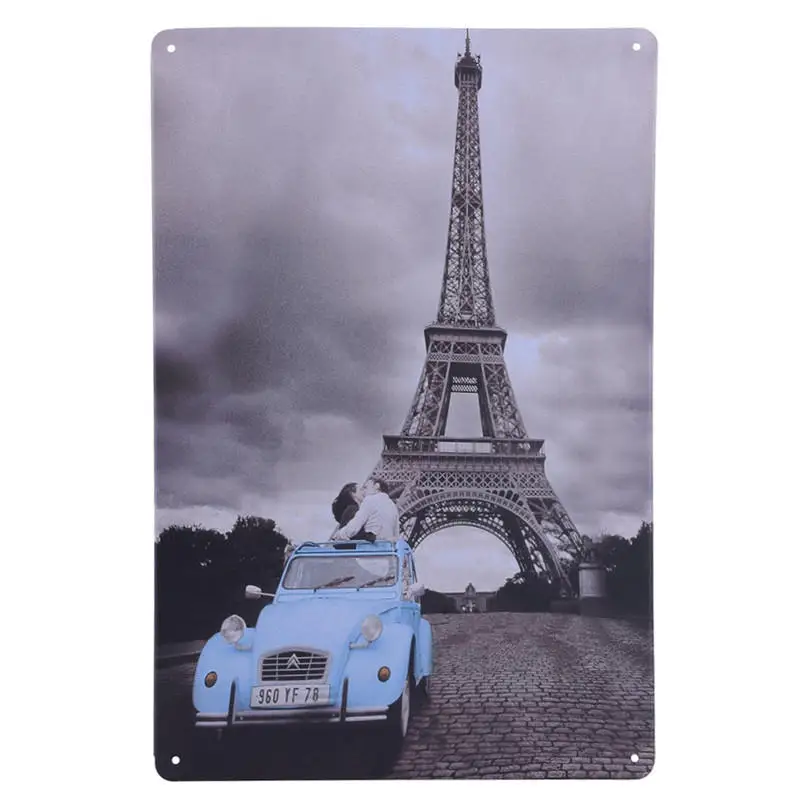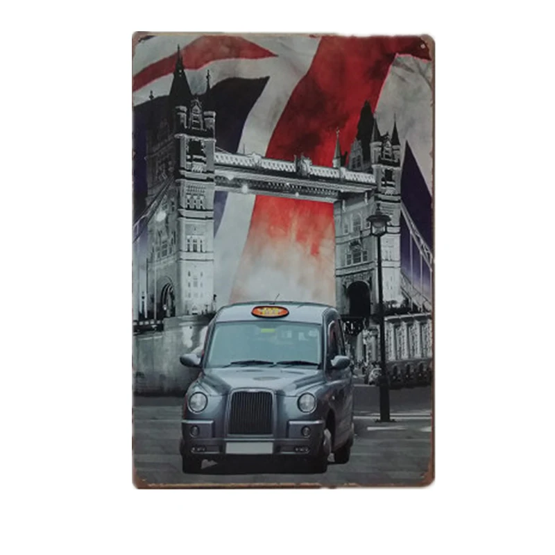 Pattern:Vintage Metal Tin Sign World Buildings And Car