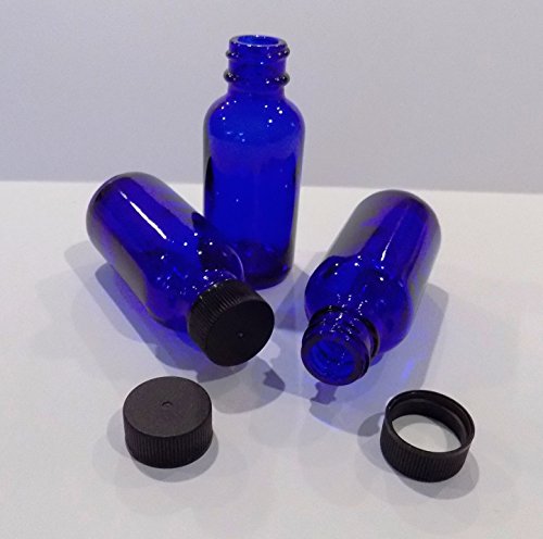 - Heavy pure HEAVYWEIGHT glass 1 ounce cobalt blue Boston Round Bottles with lined caps