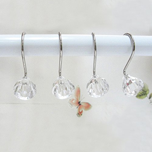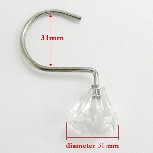 Home Bathroom Clear Acrylic Diamond Shape Shower Curtain Hooks, Set of 12 pcs (1.2')