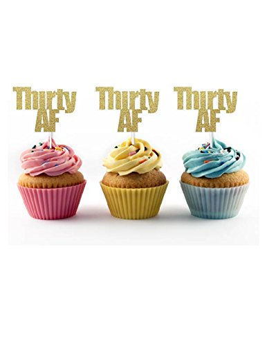 Thirty AF Cupcake Toppers in Gold Glitter (20 count) - 30th 30 Anniversary Retirement Party Decorations