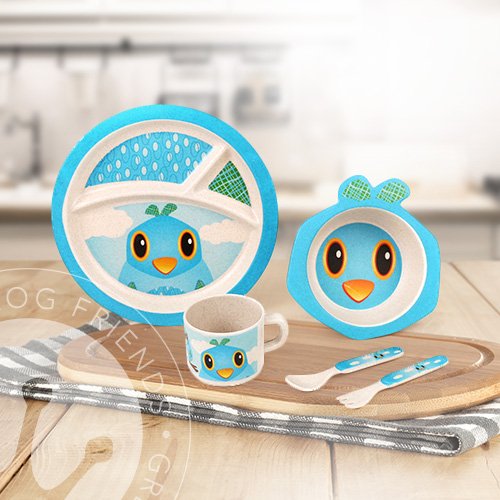 -. Title : Green Frog Friends Kids Bamboo Meal Set