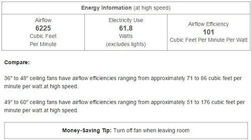 52" blade span. 9-degree blade pitch. Includes one 6" downrod. Canopy is 6" wide and 2" high.