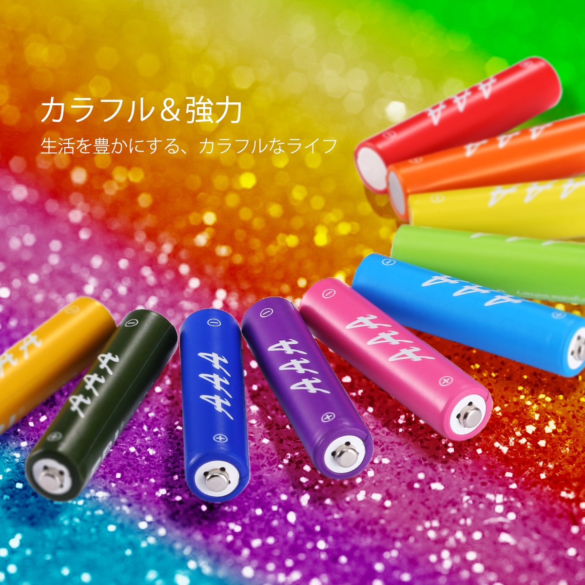 There are 10 batteries included, various colors.