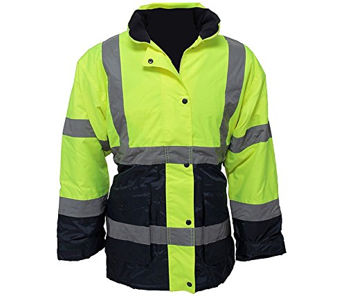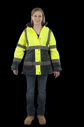 Utility Pro UHV664 Polyester High-Vis Ladies Jacket with Storm Cuffs with Dupont Teflon fabric protector, Lime/Navy, Medium