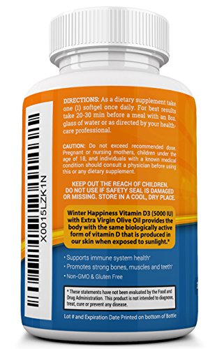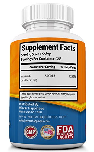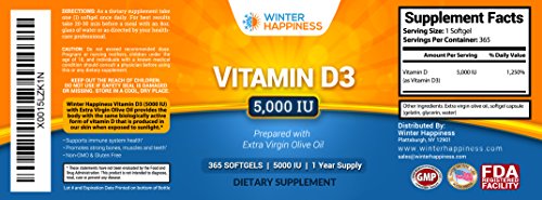 -. Title : Winter Happiness Vitamin D3 in Olive Oil, 5000IU, 365 Softgels, Non-GMO
