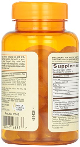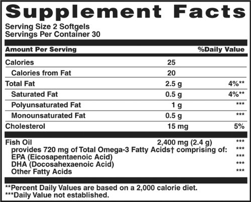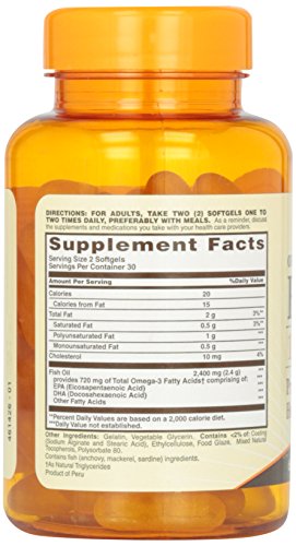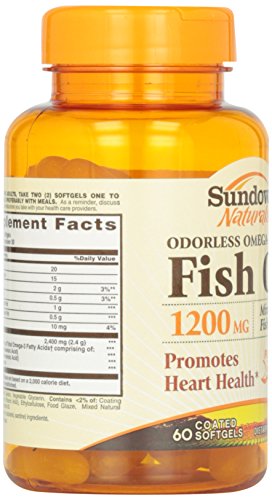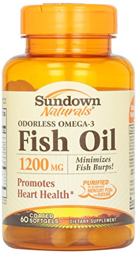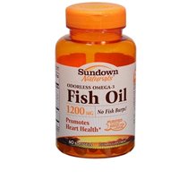 Sundown Naturals Odorless Omega-3 Fish Oil 1200 mg provides you with eicosapentaenoic acid (EPA) and docosahexaenoic acid (DHA), two fatty acids that are known for their ability to support healthy heart and cardiovascular function. Fish Oil also contributes to healthy circulation, and supports metabolic and cellular health. These Odorless Fish Oil soft gels are coated to minimize fishy aftertaste, and are purified to eliminate heavy metal contaminants such as mercury. Each serving supplies you with 720 mg of Omega-3s.