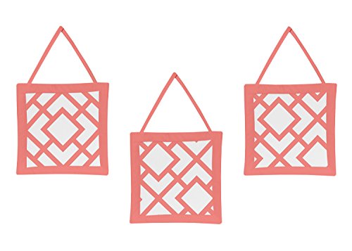 Sweet Jojo Designs Modern White and Coral Diamond Geometric Girls Wall Hanging Accessories