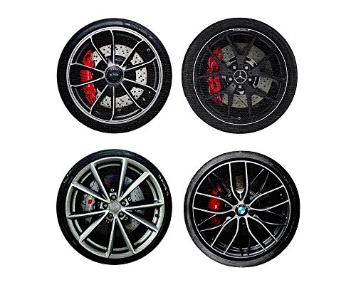 -. Binding : Kitchen -. Brand : Neurons Not Included -. Color : black, white, grey, red -. Feature : Set of 4 individual Neoprene coasters / Permanent matte finish - safe to spot clean with mild detergent / Non-slip recycled rubber back protects helps furniture / Printed in USA in our Neurons Not Included studio / 3.5 inch Diameter Coasters -. Label : Neurons Not Included -. Manufacturer : Neurons Not Included -. Model : 6102573 -. MPN : COASTER-026 -. PackageQuantity : 1 -. PartNumber : COASTER-026 -. ProductGroup : Kitchen -. ProductTypeName : HOME -. Publisher : Neurons Not Included -. Studio : Neurons Not Included -. Title : Luxury Car Wheels Coaster Set- 4 Piece Set - Neoprene for Drinks