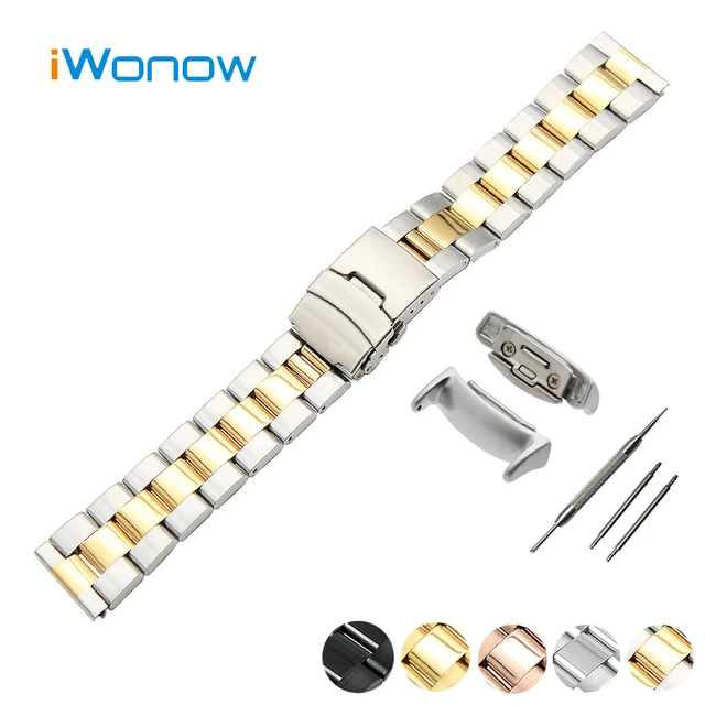 | [해외] 스테인레스 스틸 시계 밴드 18 미리메터 대한 samsung gear fit 2 SM-R360 안전 버클 스트랩 손목 벨트 팔찌 블랙 실버 + 어댑터 |