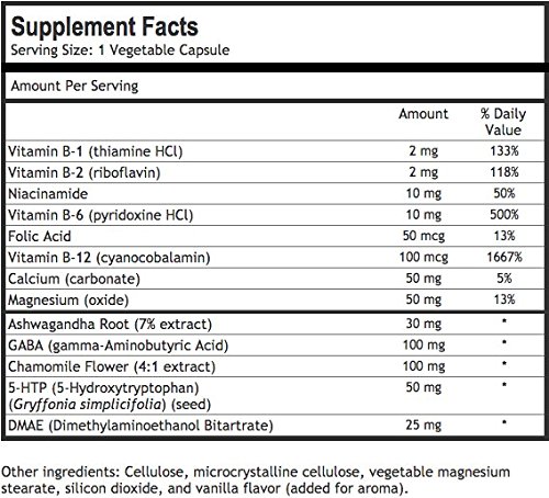 -. Title : ZENTA - Anxiety Relief & Stress Support Supplement - Natural Ingredients Help Relax Mind & Body, Calm, Promote Positive Mood Boost & Serotonin Level Increase: GABA, 5-HTP, Ashwagandha, Chamomile, DMAE