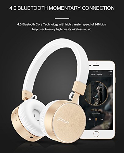 -. Title : Picun P10 Bluetooth Headphone, Wireless Headphone with Mic, Hifi Bass Over-Ear Stereo Headset, Soft Memory-Protein Earmuffs, Effectively Noise Cancelling, Workout 8 Hour Battery for Pc/ Phones