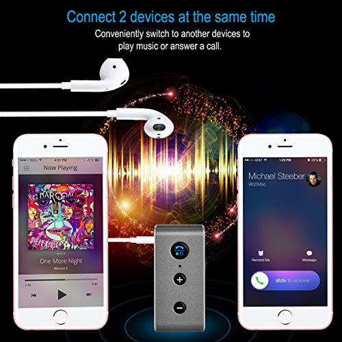 -. Feature : Wide Compatibility: Support the most of Bluetooth devices, Small But Amazing Fill Your Life With Wireless Notebook/ Tablets/ Mobile Phone/ Car Stereo/ Headphone/ home audio system, no obstacle can reach up to 10 meters. / Super Long Working Time: Independent TF card mode, power failure memory, Buckle up for 18 hours of nonstop music streaming, radio, GPS or phone calls and get fully charged within 3.5 hours / Advanced Smart Bluetooth V4.2 Chip: BT710 Adopt the new upgrade Bluetooth V4.2 chip, the multi-data transmission makes more stable, the wider wireless coverage and the more efficient low-power operation Support to connect with 2 phones at the same time. / Convenient Dual Connections: Enjoy an easy and quick switch between two devices actively connected to the Bluetooth adapter and play music from either devices; straight-forward controls with buttons to adjust volume, play / pause music, or answer calls / All Metal Material: Made By Aluminum Alloy, Surrounded by an integrated molding, Use rigorous process to interpret the attitude that does not follow the crowd.