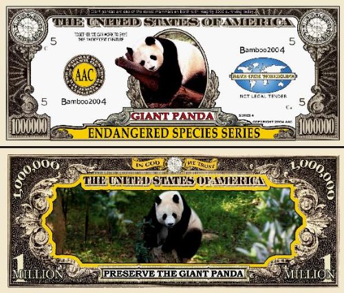 Product DescriptionENDANGERED GIANT PANDA MILLION DOLLAR BILL (5 bills)0