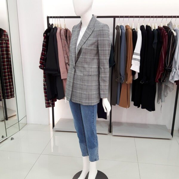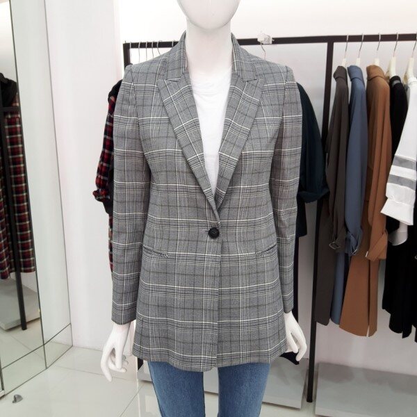 thyren, 베이직한 원버튼 체크자켓입니다