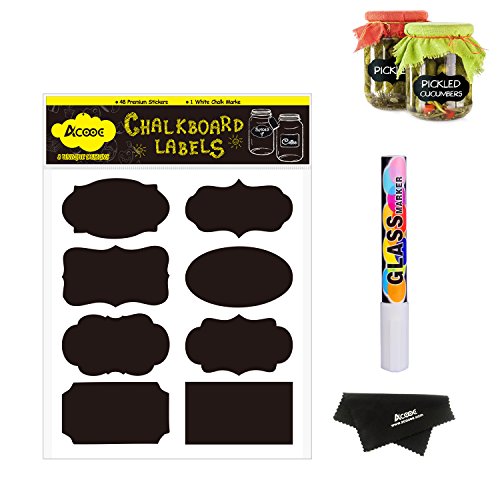 X-Chiji 48pcs 8 Design Blackboard Kitchen Premium Sticker + White Chalk Marker Craft Jar Organizer Labels Chalk Board Stickers Black (48)