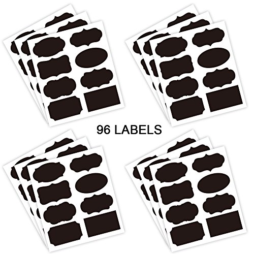 X-Chiji 96pcs 8 Design Blackboard Kitchen Premium Sticker Labels Chalk Board Stickers Black (96)