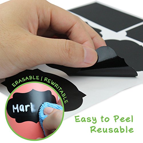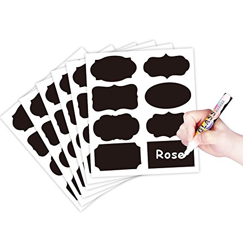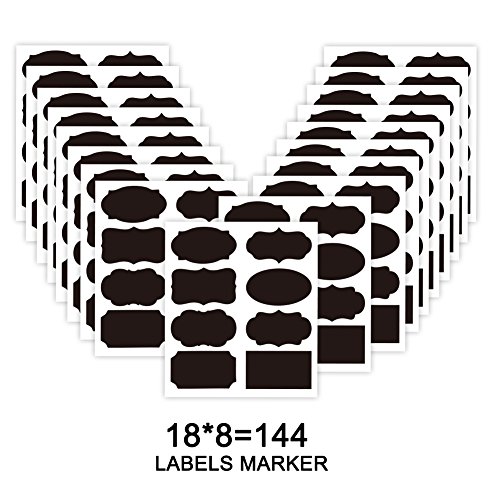 X-Chiji 144pcs 8 Design Blackboard Kitchen Premium Sticker Labels Chalk Board Stickers Black (144)