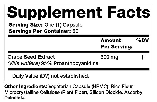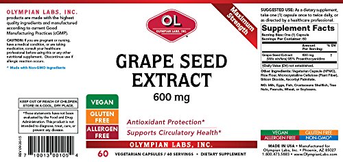 ReleaseDate : 2013-12-10 Studio : Olympian Labs Publisher : Olympian Labs Binding : Health and Beauty Product Description One of our most popular products, Grape Seed Extract has high levels of antioxidants for the circulatory system. Grape Seed Extract is known to be roughly 20 times more powerful than Vitamin C and about 50 times more powerful than Vitamin E. Olympian Labs Grape Seed Extract is processed through a low-temperature water extraction method, is completely water soluble, and free of dangerous solvents and additives. Increased water solubility equals greater bioavailability. It is easily absorbed into the bloodstream and has even been shown to cross the blood-brain barrier, thus providing protection to the brain, its vessels, and the entire central nervous system. Grape Seed Extract effectively aids in resisting blood vessel and skin damage, reduces inflammation, and counteracts other damage caused by the daily bombardment of free radicals. It may help reduce edema and swelling. Grape Seed Extract also acts as a natural anti-histamine, moderating allergic responses by reducing histamine production and boosting the immune system 0
