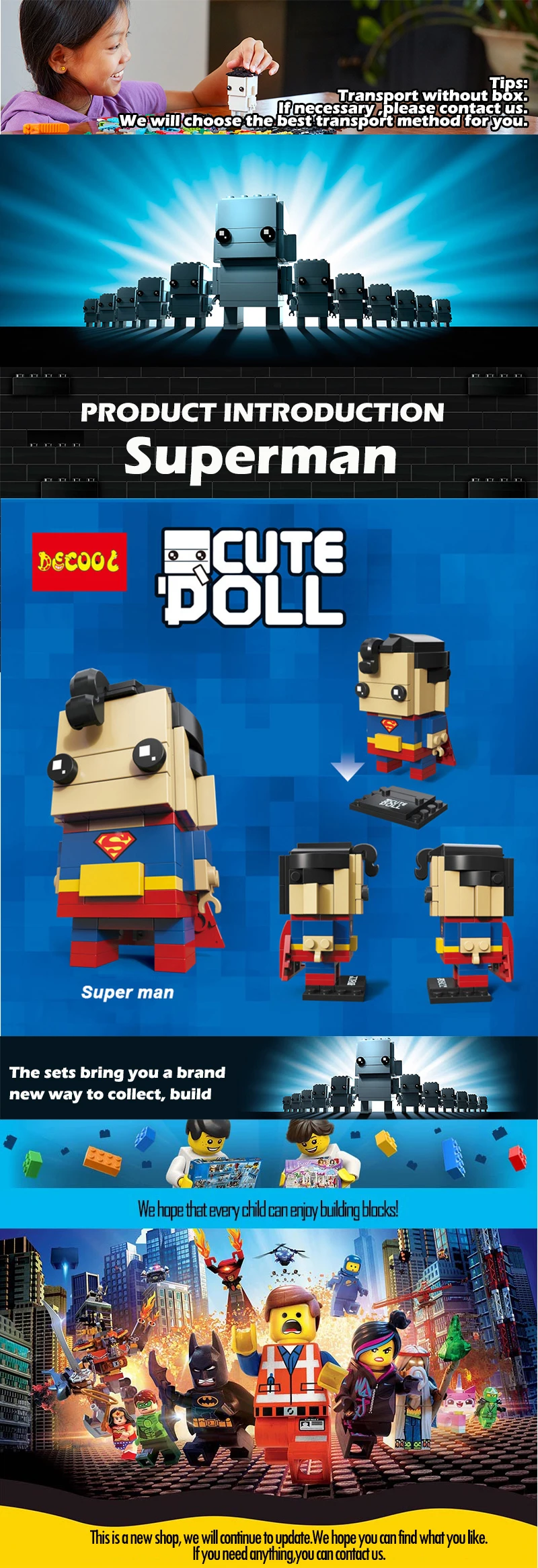 Product Name:DC Comics Super Heroes Justice League superman wonder woman Brickheadz