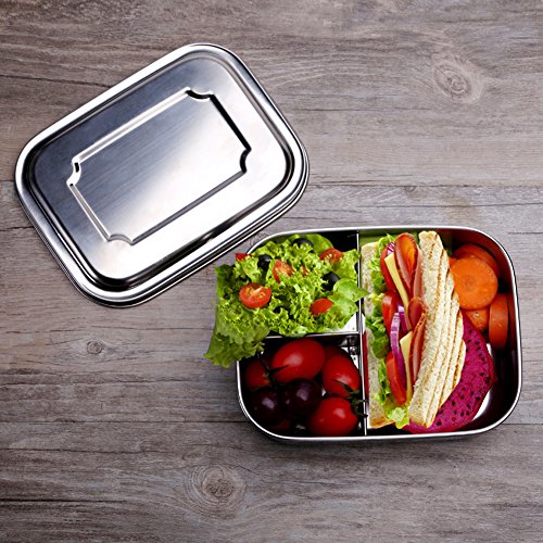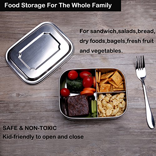 Stainless Steel Food Container Bento Storage Lunch Box,3 Compartments Design Perfect for Picnic Salad Box Healthy Snacks,Sides,or Finger Foods, for Kids or Adults, Eco-Friendly, Dishwasher Safe.