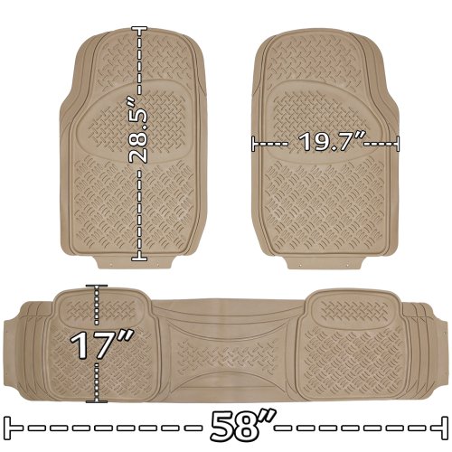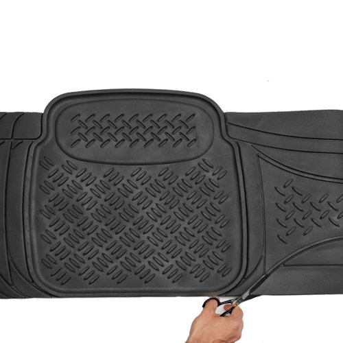 -. Feature : Set Includes: 2 Front Mats (19.7 inch x 28.5 inch), 1 Rear Mat (61.4 inch x 17 inch) / Easily Trimmable for a Semi-Professional custom Fit / 100% All-Weather Heavy Duty - Protects Vehicles from Dirt, Dust. Rain, Hail, Sleet, Ice, Snow / Made From 100% HD Rubber - Super Easy to Clean