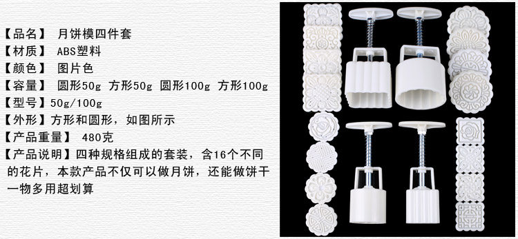 ?【16花片】月饼模具套装 中秋南瓜卡通手压绿豆糕点冰皮烘焙工具