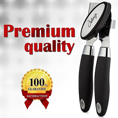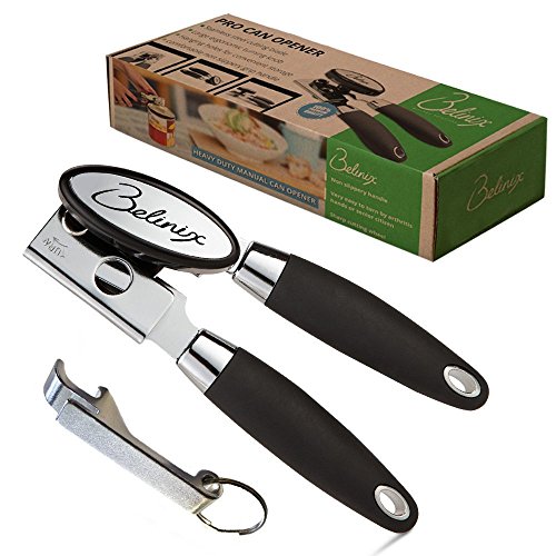 Professional Can Opener Manual -Durable Design to Effortlessly Open Cans with Heavy Duty, Premium Stainless Steel Blade, Ergonomic Grip Silicone Handle, Easy Turn Knob + FREE Bottle Opener by Belinix