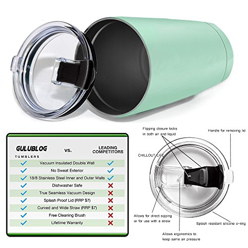 GULUBLOG Tumbler Vacuum Insulated Double Walled Stainless Steel Travel Mug Sweat Free Coffee Cup (20oz/Green)