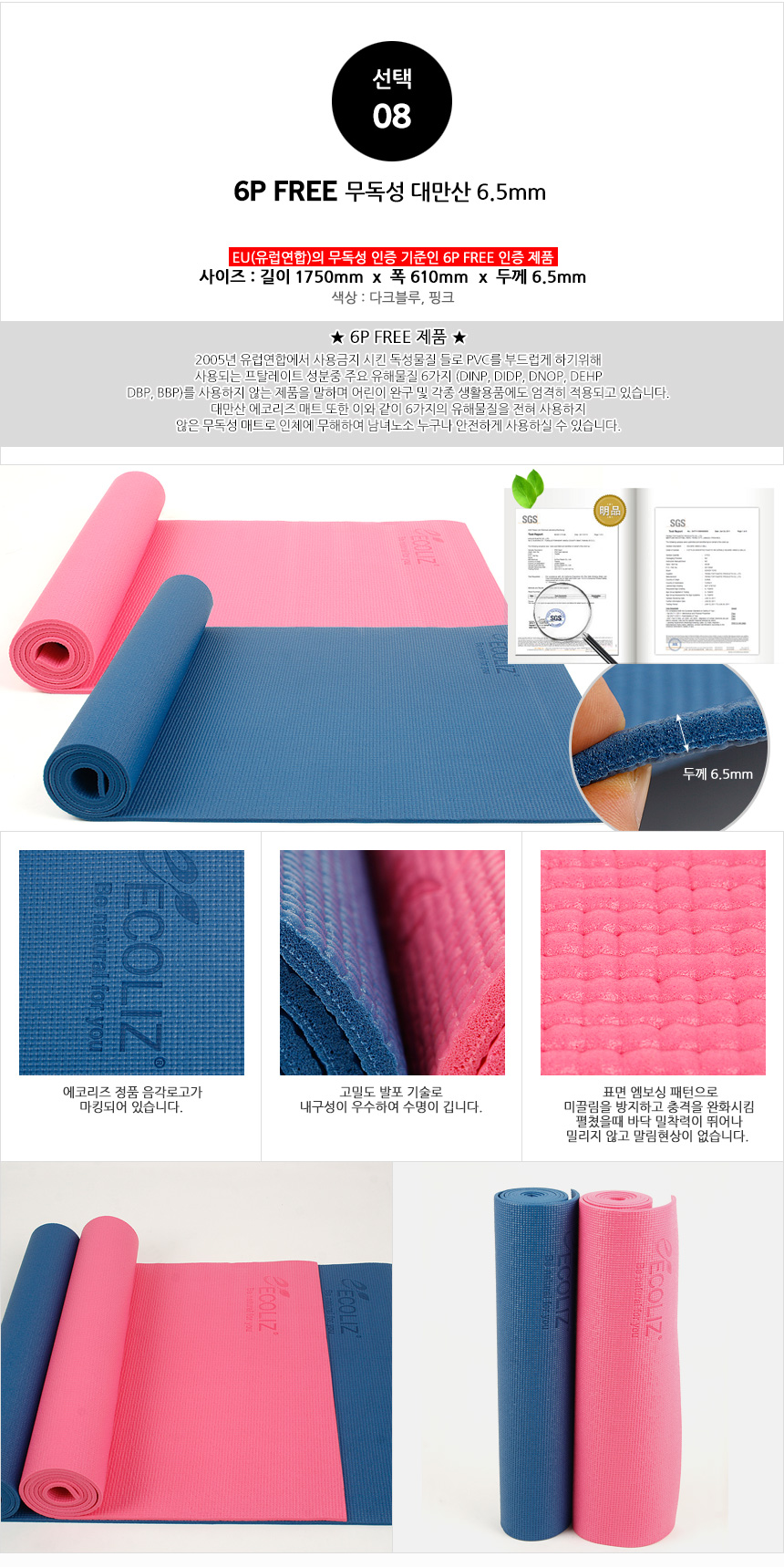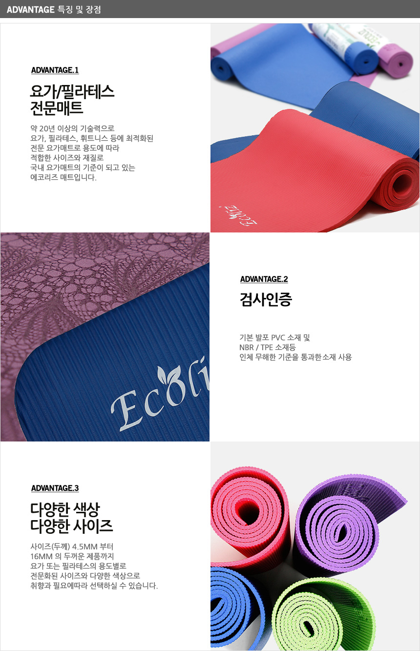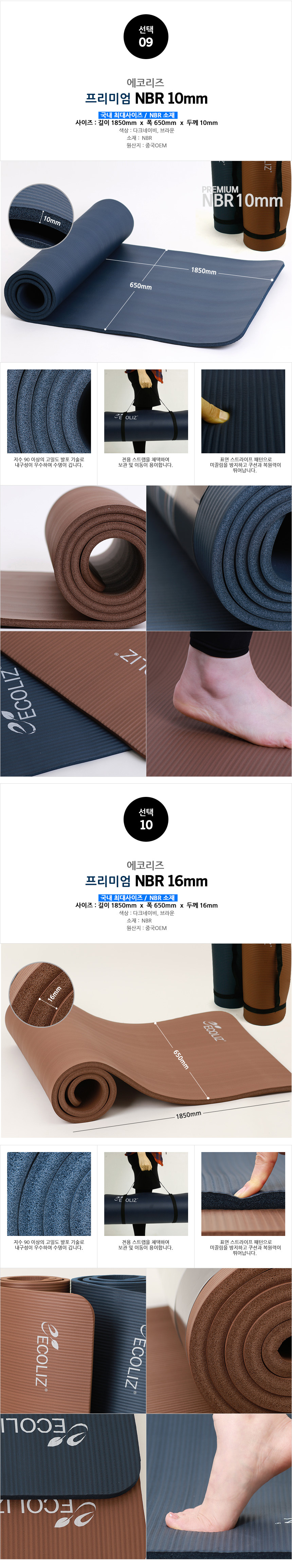 [ECOLIZ]Yogr NBR Mat 8/10/16mm Pilates Fitness