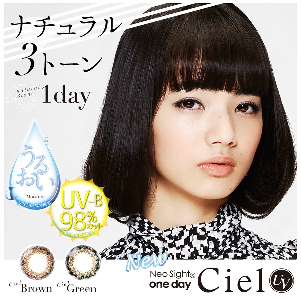 Neosite One Day Ciel UV contains UV absorber so we will protect your eyes firmly from ultraviolet rays.