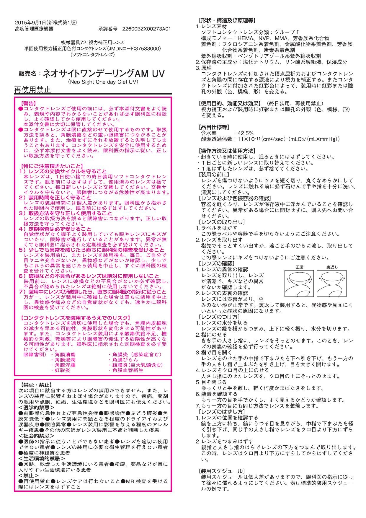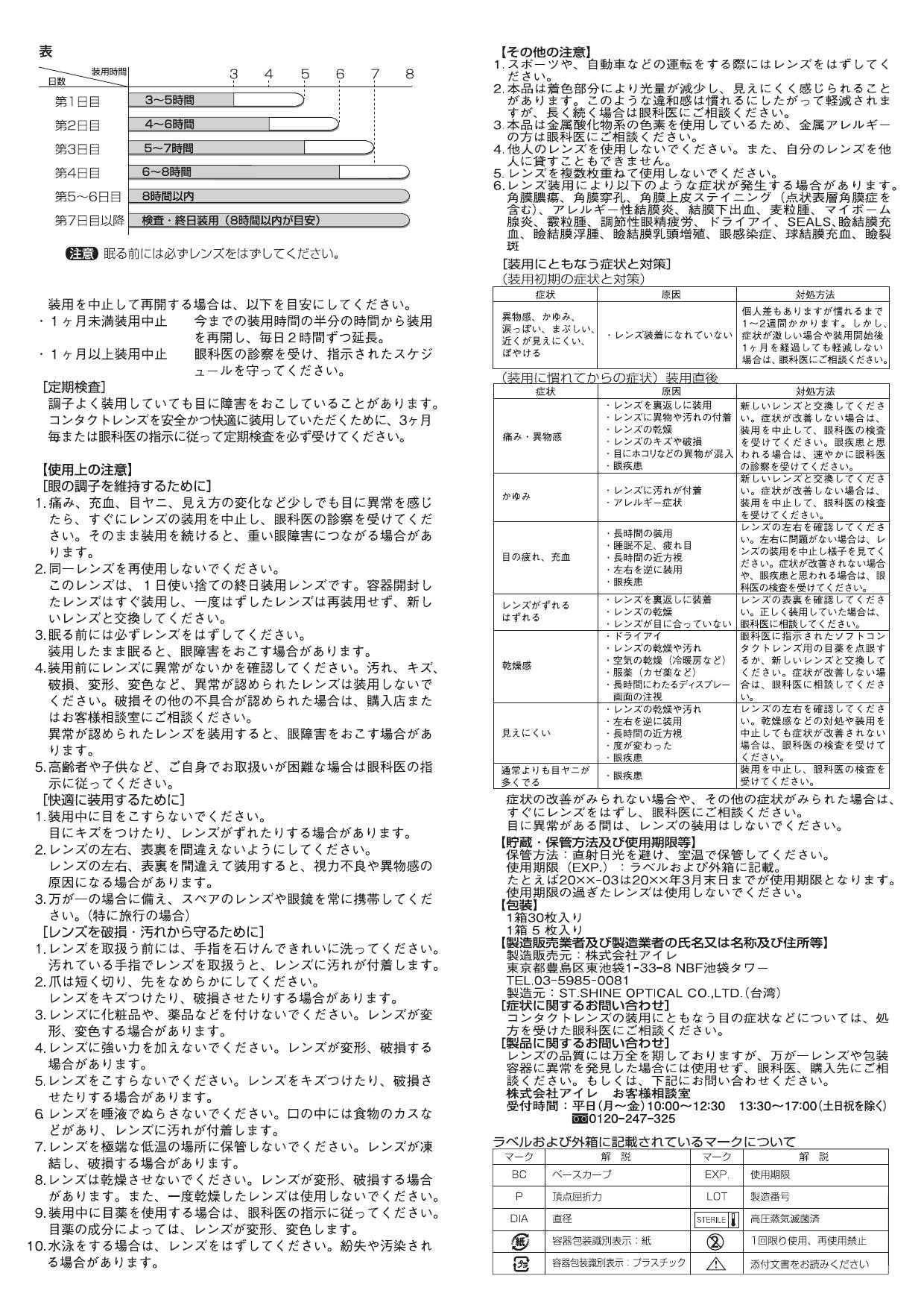 ● If you feel any abnormality, stop wearing and please take the examination of the ophthalmologist immediately.