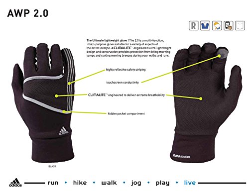 Adidas AWP 2.0 is the ultimate runner's glove. Ultra-lightweight design and fabrication provides protection from biting morning temps or cooling evening runs.