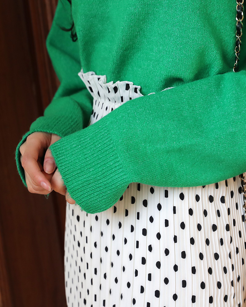- 手の甲を完全に覆ってくれるロンハンスリーブとドロップされた肩の切開ラインに腐海見えることなく着用されます