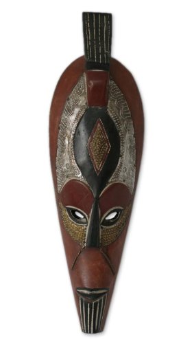 NOVICA Decorative Ghanaian Large Wood Mask, Red 'Dance Mask'