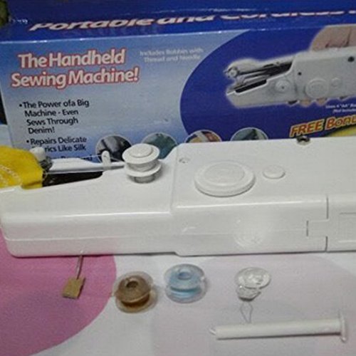 -. Title : Souarts White Color Double Stitch Handheld Electric Mini Sewing Machine