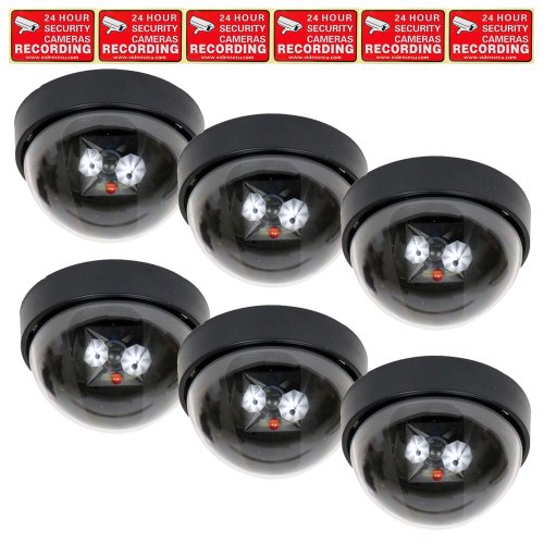 -. Binding : Electronics -. Brand : VideoSecu -. EAN : 0791090650885 -. Feature : Authentic styling - nobody will know the difference / Flashing red light LED makes it appear to work just like a real security camera / Increase your security at a fraction of the cost of real cameras / Simple and easy installation. Require 2 AA batteries(NOT included) / Package included: 6 x dome fake cameras and 6 x free security warning stickers -. Label : VideoSecu -. Manufacturer : VideoSecu -. Model : CRR -. MPN : DMY03 x 6 -. PackageQuantity : 1 -. PartNumber : DMY03 x 6 -. ProductGroup : Photography -. ProductTypeName : SURVEILANCE_SYSTEMS -. Publisher : VideoSecu -. Studio : VideoSecu -. Title : VideoSecu 6 x Imitation Dummy Fake Dome Security Cameras with Flashing LED Home CCTV Simulated Surveillance with Free Warning Stickers CRR -. UPC : 791090650885