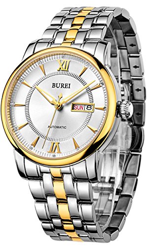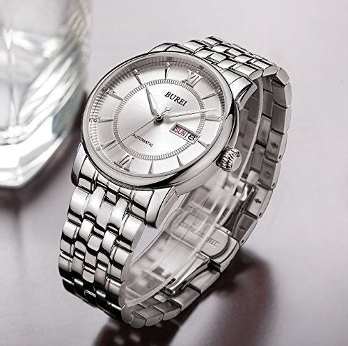 -. Title : (バオショ)BUREIメンズ発光日付銀ブレスレット自動時計 シルバーパネルの白文字盤