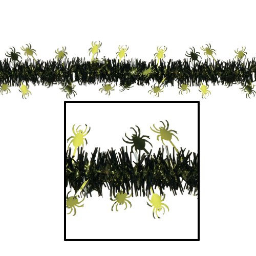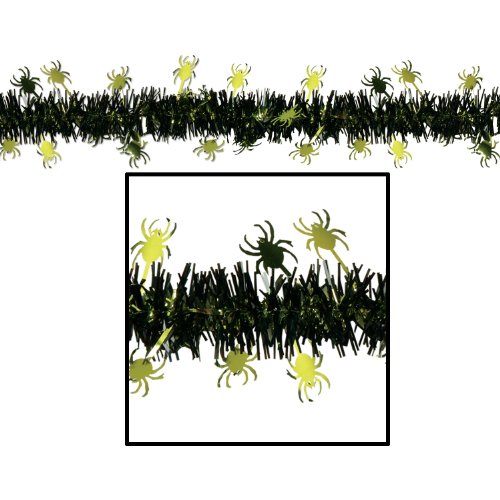 Studio : The Beistle Company Publisher : The Beistle Company Binding : Toy Product Description Beistle 00124 Flame Resistant Metallic Spider Garland. Made from black metallic fringe with randomly attached lime green spiders, this 12 foot Metallic Spider Garland is perfect for decorating a banister or hanging across your ceiling. 0