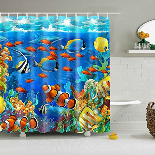 GWELL Blue Ocean Tropical Fish Coral Undersea World Shower Curtain Waterproof Fabric Bathroom Curtain with 12 Hooks (70.86X70.86-Inch, #1)