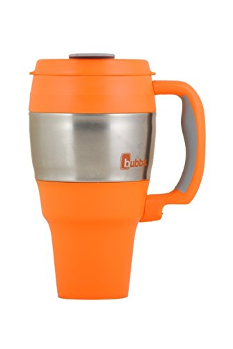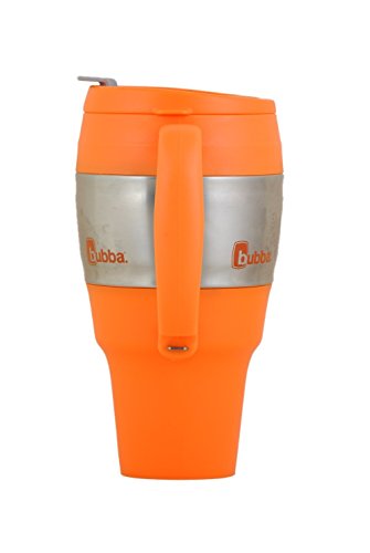 -. Brand : Bubba Brands -. Color : Orange -. Feature : Dual-walled polyurethane (exterior & interior) with foam insulation (BPA free), and stainless steel exterior band / Keeps cold beverages cold and hot beverages hot for hours / Tough and durable construction featuring ergonomically designed handle with soft touch TPE grip / Built in bottle opener under the handle; 9" tall and 5" wide at the top / 2.75" Depth Fits in larger cup holders; 2.75" Across Bottom, 4" Wide at Top of Cupholder -. Label : Bubba Brands -. Manufacturer : Bubba Brands -. MPN : 367-Orange -. PackageQuantity : 1 -. PartNumber : 367-Orange -. ProductGroup : Kitchen -. ProductTypeName : KITCHEN -. Publisher : Bubba Brands -. Studio : Bubba Brands -. Title : bubba 34 oz travel mug classic orange