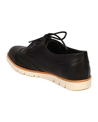 Product Description These leatherette spectators are made with an almond toe, stitch details and lace up front. Also made with a lug sole and self tie closure. 0