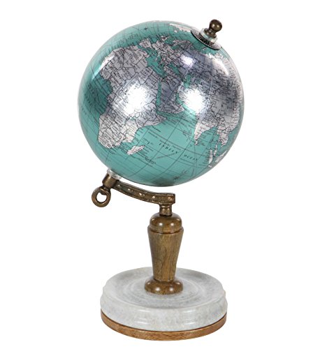 Studio : Deco 79 Publisher : Deco 79 Binding : Kitchen Product Description 5" x 10" Modern Reflections metal polyurethane wood marble globe, polished cyan and silver plastic globe, metallic brown iron axis, stained brown mango wood post, round base made of white marble and brown mango wood 0