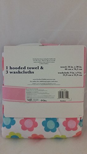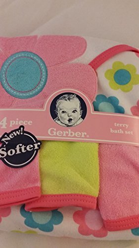 -. Title : Gerber 4 Piece Terry Bath Set 1 Hooded Towel 3 Washcloths