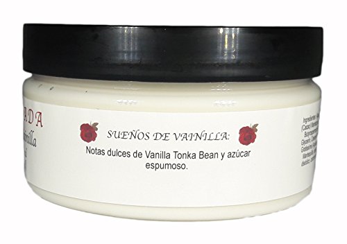 Crema Corporal: Nuestras lociones y cremas para el cuerpo proporcionan beneficios suaves y delicados de hidratacion diaria incluso para las pieles mas delicadas. Con una infusion de manteca de coco nutritiva y lujosas mantecas de karite y mango para mimar tu piel con esta formula no grasosa que proporcionara una hermosa fragancia e hidratacion a tu piel. Aplique segun sea necesario para hidratar la piel y obtener un acabado liso suave como el polvo. SUENOS DE VAINILLA: Notas dulces de Vanilla Tonka Bean y azucarFeature
