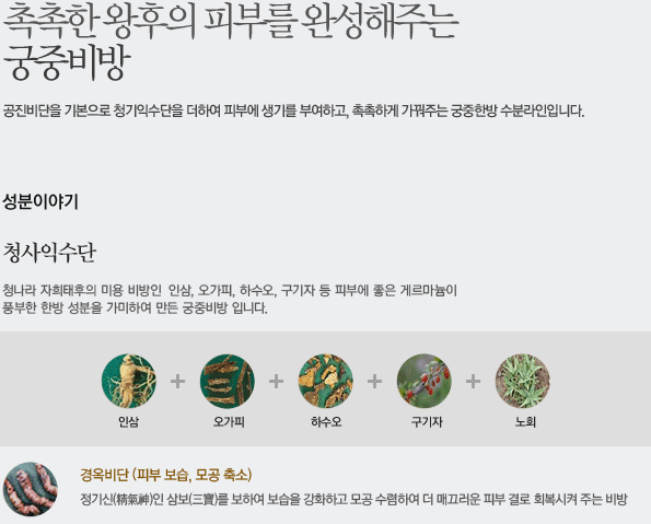 | Instantly provides moisture and makes skin fresh and watery. Promotes skin elasticity and energy. Formulated with medicinal herb extracts. |