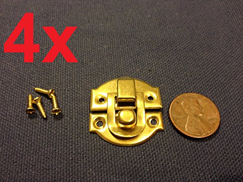4 Sets Gold Mini Dollhouse Antique Wood Latch Sets Box Case Lock Hinge Small C6