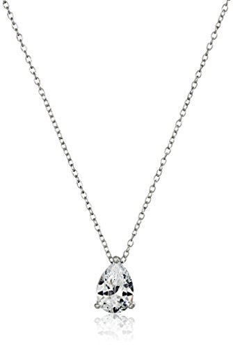-. Title : Platinum-Plated Sterling Silver Teardrop Cubic Zirconia Pendant Necklace, 18"